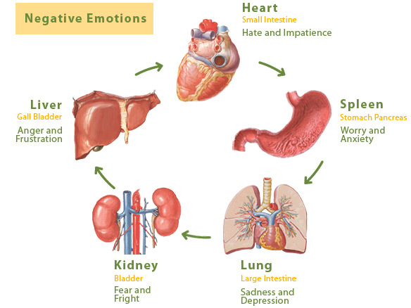 When obstructed the internal organs store unhealthy energies that can overflow into other body systems and surface as negative emotions and sickness.